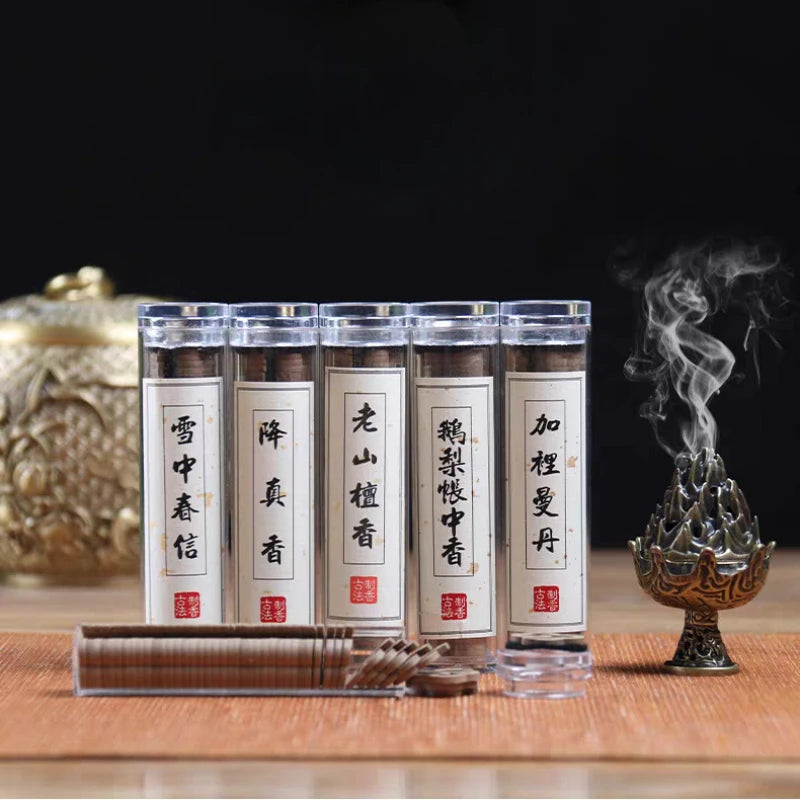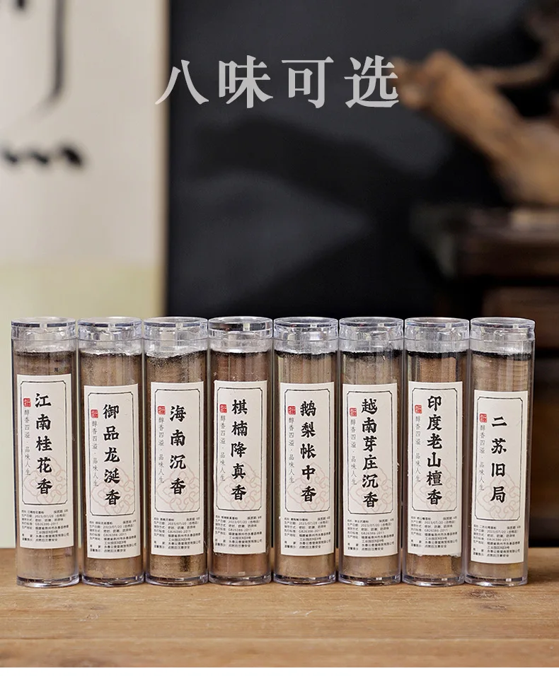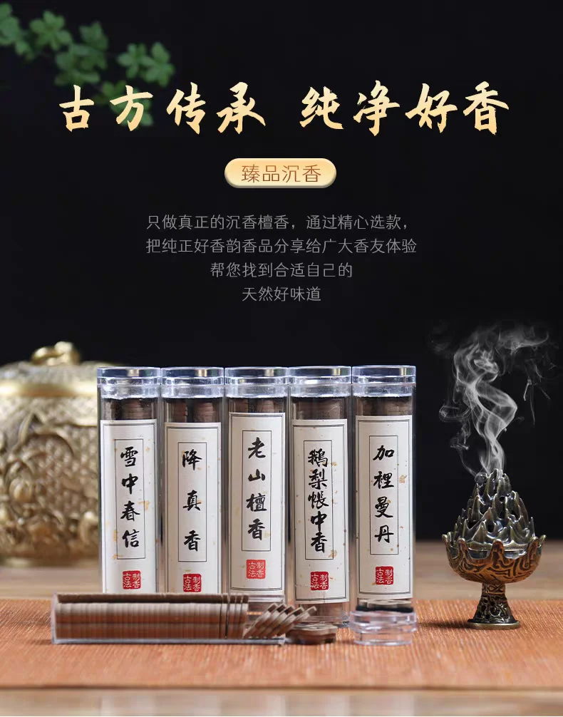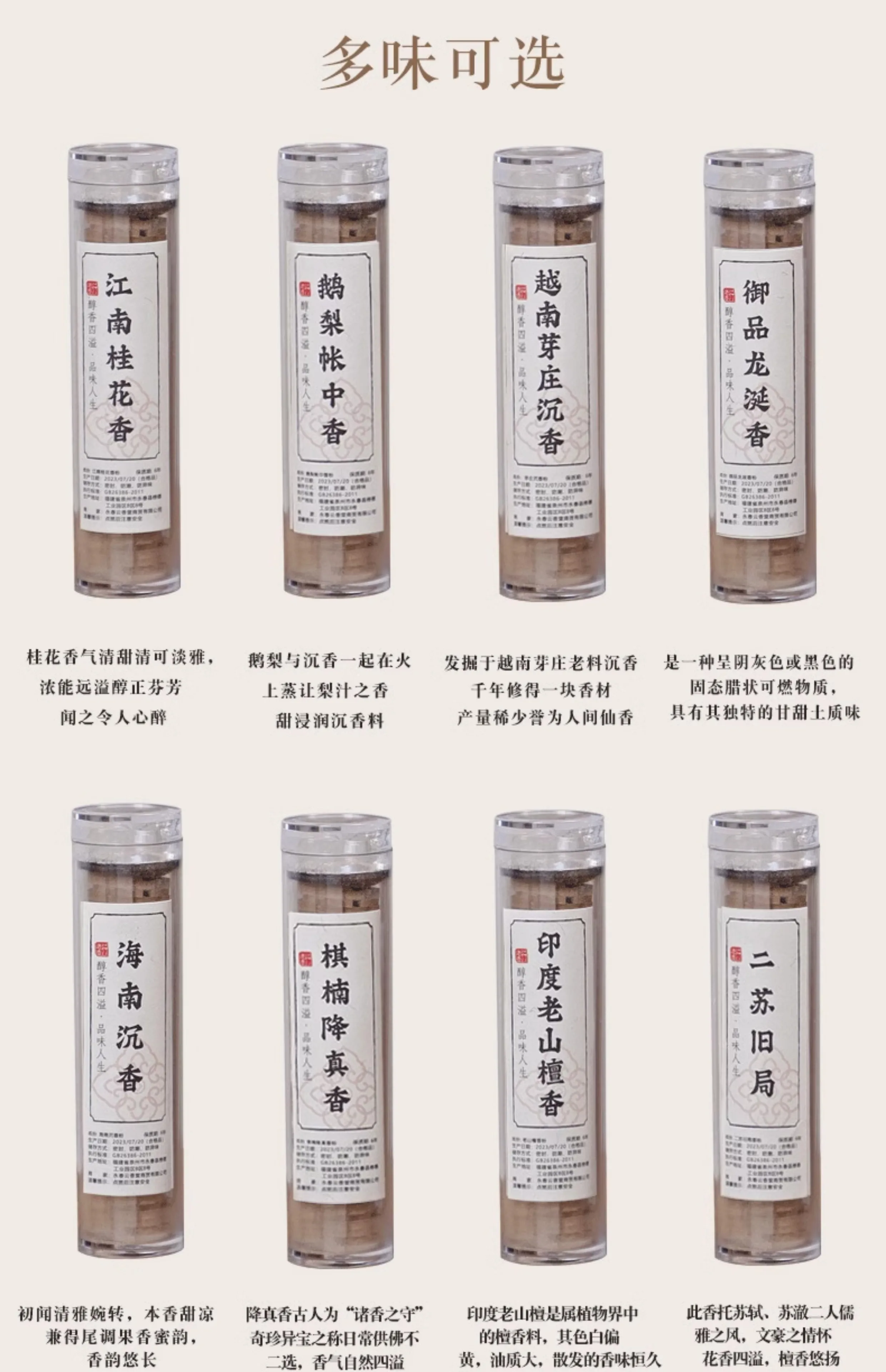 —This incense stick recipe comes from two famous poets and painters of the Song Dynasty in China (Su Shi, Su Zhe), which has a history of more than 1,000 years and is very popular with literati and elegant people. This incense is very suitable for reading, writing, drawing, chatting with friends. In terms of efficacy, it can calm people’s minds, remove filth, and remove cold accumulation.