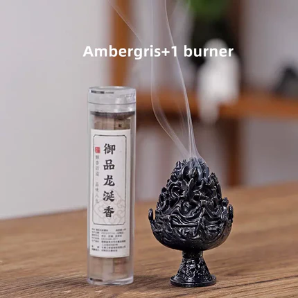 —Ambergris incense has the effects of calming the nerves, relieving stress, promoting sleep, enhancing memory, and being antibacterial and anti-inflammatory. It is also a kind of Chinese herbal medicine, which has the effects of promoting qi and blood, dispersing stasis and relieving pain, and treating chest tightness and shortness of breath.